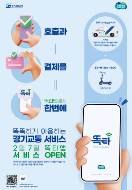 - 경기도 '똑타' 앱은 구글플레이어나 앱스토어에서 다운받으시면 됩니다.