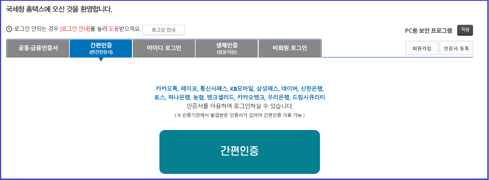 √ 국세청 홈페이지에 접속 후, 로그인을 진행합니다.
