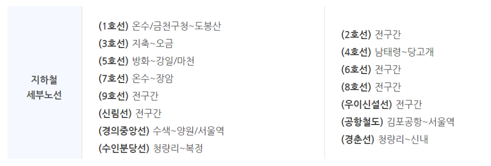 지하철의 경우 서울지역 내 역에서 승차 후 서울지역 외 역에서 하차할 경우