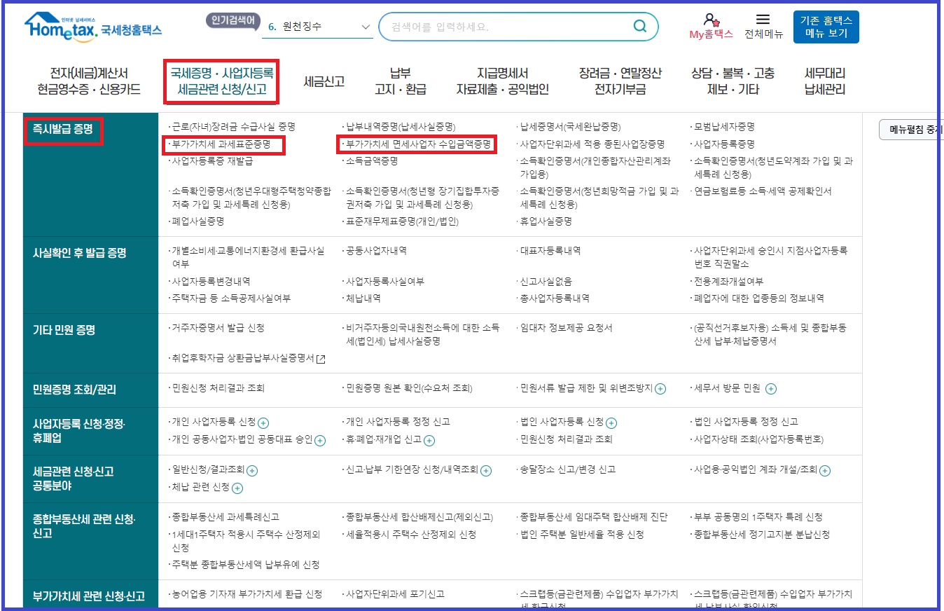 일반 / 간이과세사 : 부가가치세 과세표준증명