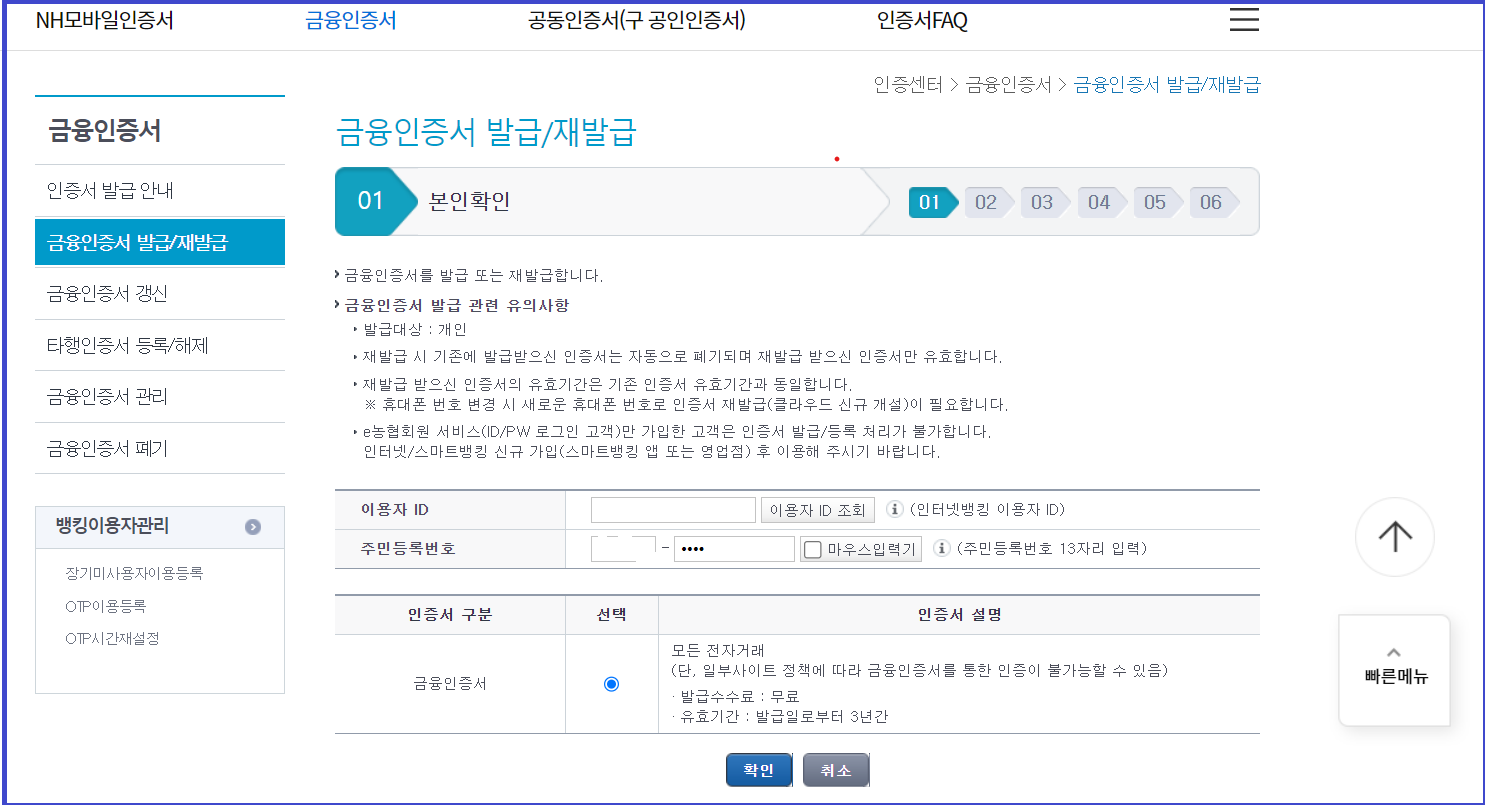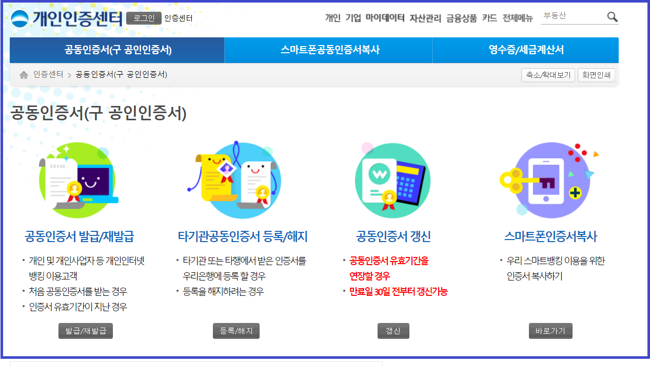 공인인증서 발급 재발급 (은행별)
