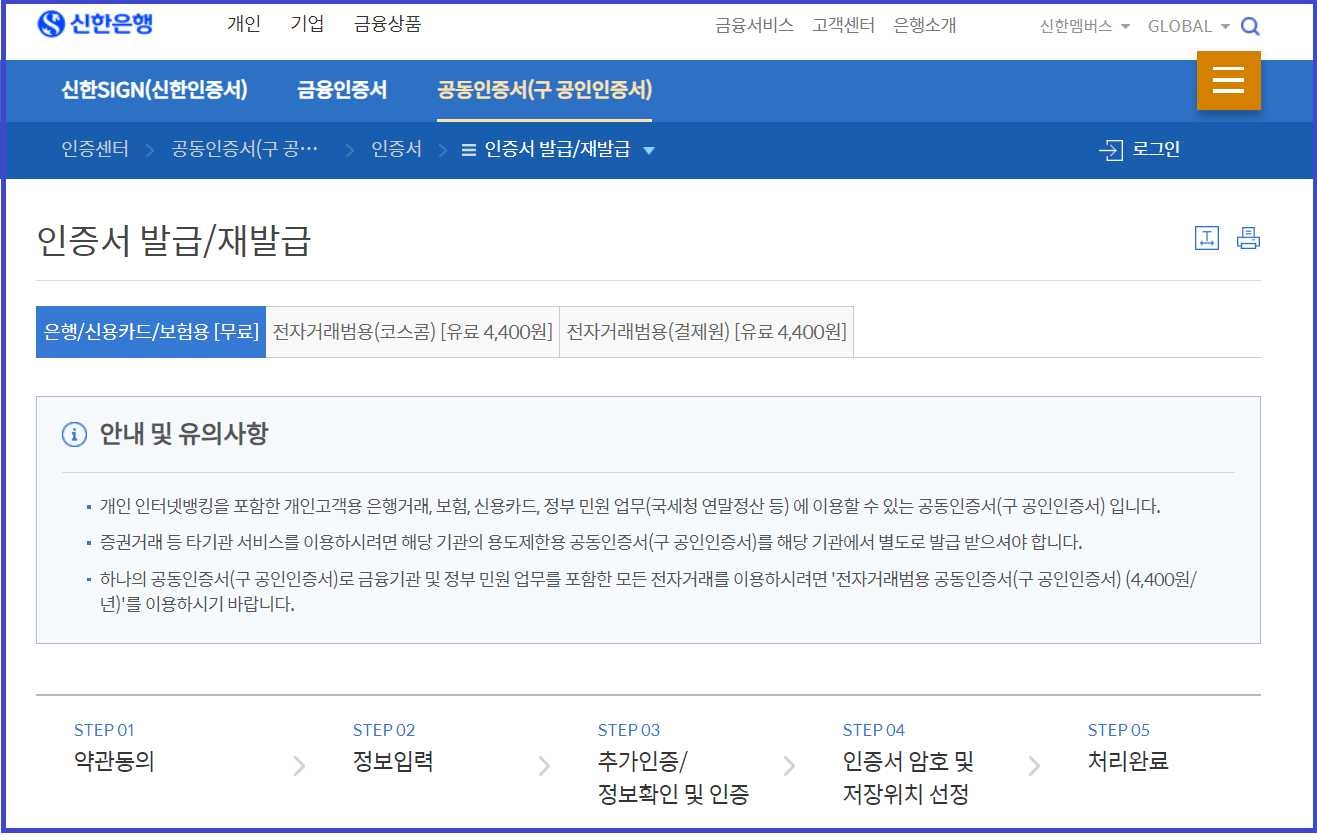 ⑤ 신한은행 공인인증서