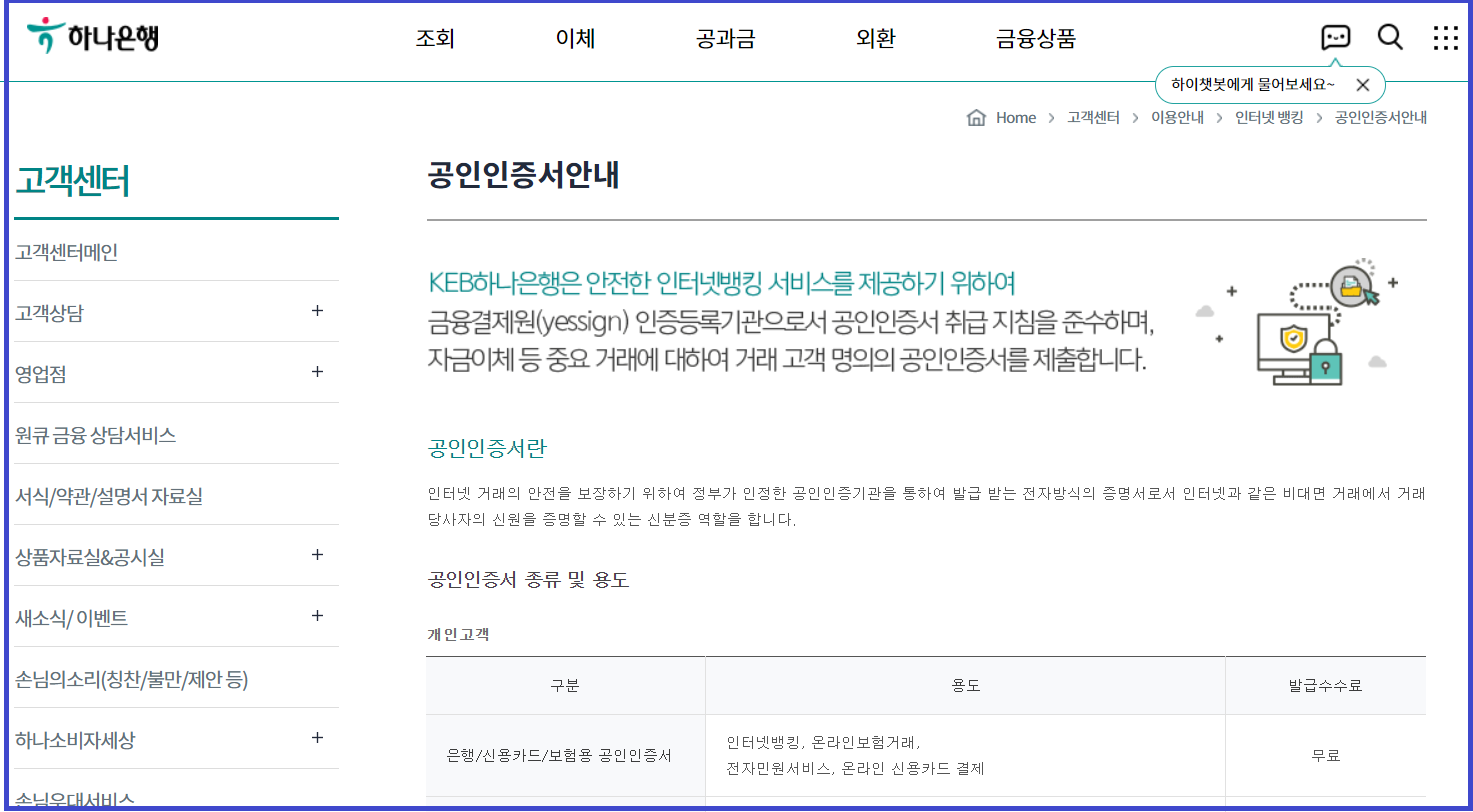 거래하시는 은행 공인인증서는 필수 이오니,