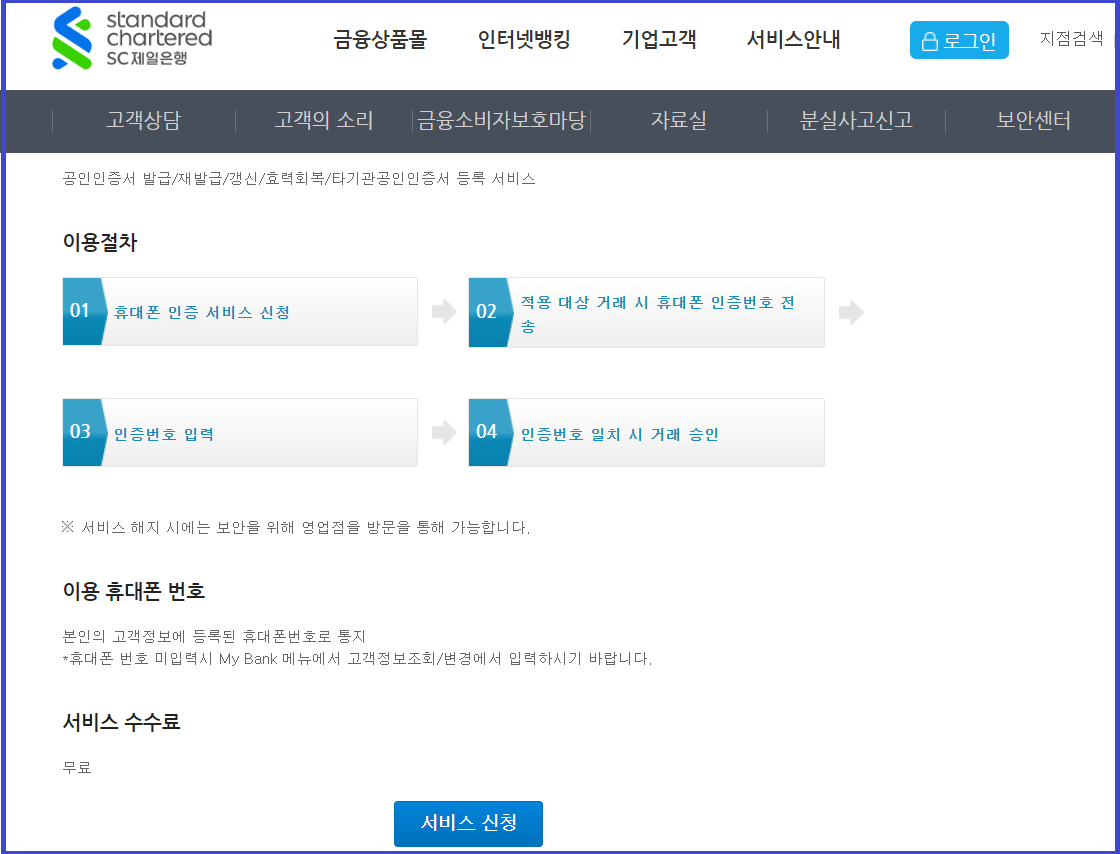 ⑥ SC제일은행 공인인증서