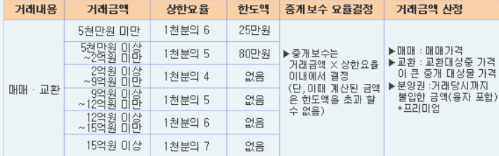 아파트 매매 수수료(요율표)는 임대차 수수료(요율표) 보다 약 0.1%가량 높습니다.
