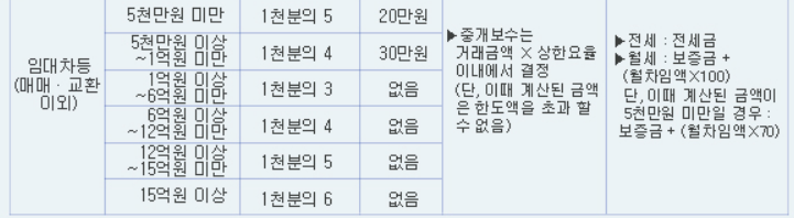 아파트 전세/월세 중개 수수료(요율표)는 다음과 같습니다.