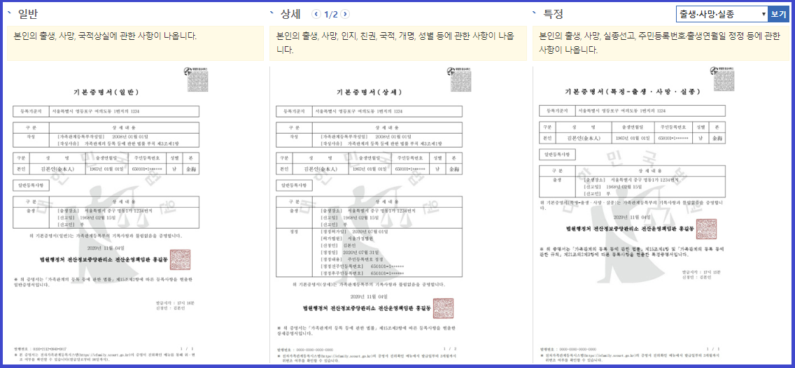 기본증명서는 개인의 출생과 사망 등에 관한 사실을 증명하는 서류로 출생, 국적변경, 개명,