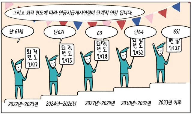 위 도표의 퇴직 연도에 따른 연금지급개시연령이 적용됩니다.)