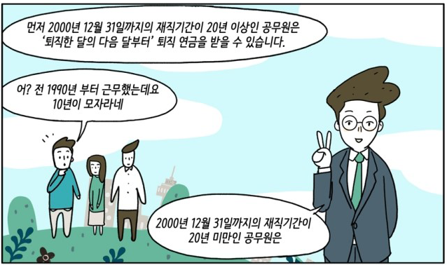 2000년 12월 31일까지 20년 이상 재직자는 퇴직 즉시 연금 수령이 가능합니다.