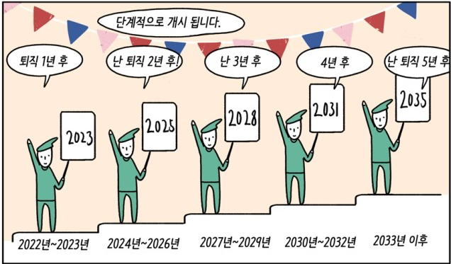 1996년 1월 1일 이후에 임용된 전체 공무원에 대해서는 2022년부터 2033년까지
