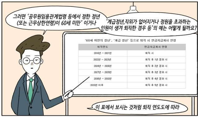1996년 1월 1일 이후 임용자부터 공무원연금 수령 나이가 단계적으로
