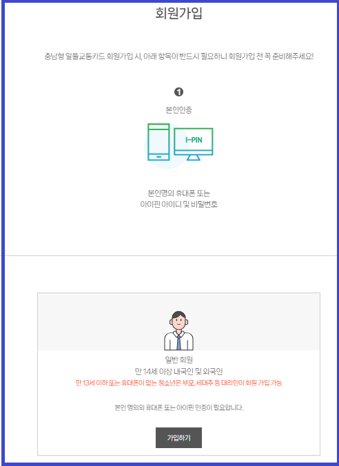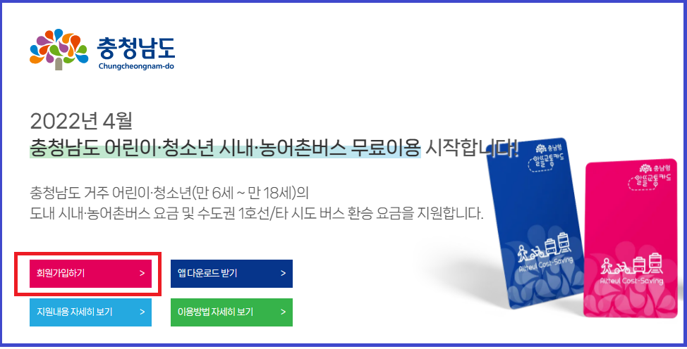 충남알뜰교통카드 홈페이지에서 회원가입을 한 후,