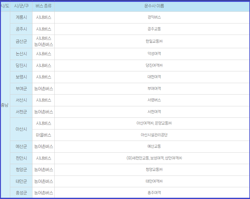 충남지역 시내·마을버스 운수사입니다.