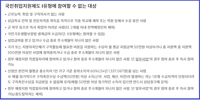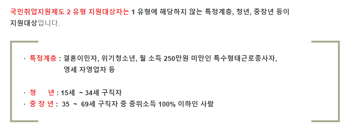 취업지원서비스는 1, 2 유형 모두에게 적용됩니다.
