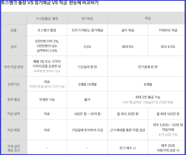 토스뱅크 통장 vs 정기예금 vs 적금 한눈에 비교하기