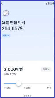 보관하고 싶은 금액과 보관 기간을 선택하면 오늘 받을 수 있는 이자를 미리 볼 수 있습니다.
