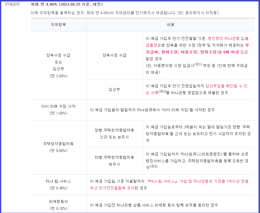 4. 금리 및 우대금리 현황은 다음과 같습니다.