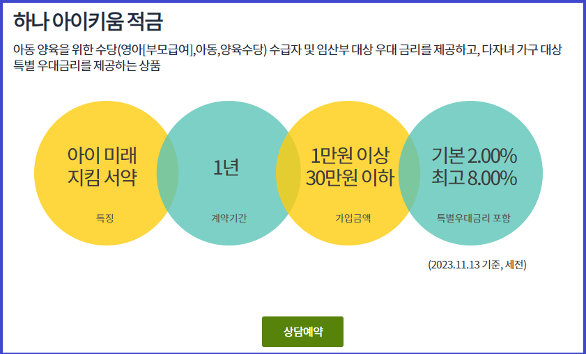 7. 하나 아이키움 적금