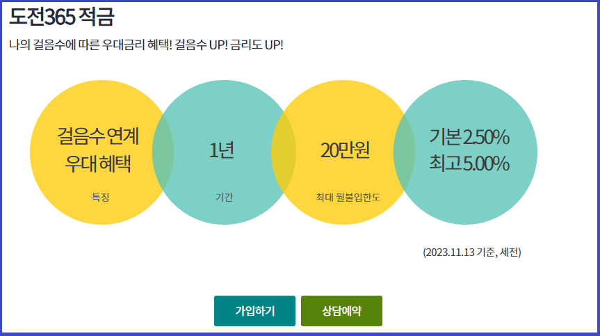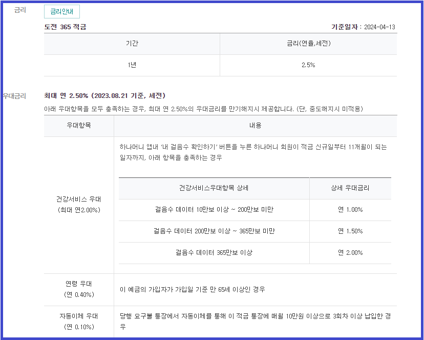 1. 도전 365 적금 가입가간은 1년, 최대 월불입한도는 20만 원입니다.