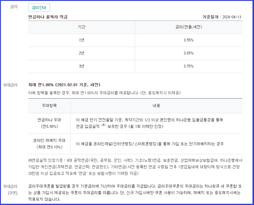 하나은행 정기적금 금리 이자 (가입방법)