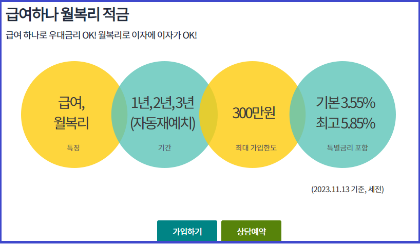 1. 급여하나 월복리 적금은 급여 하나로 우대금리 OK!, 월복리로 이자에 이자가 OK!