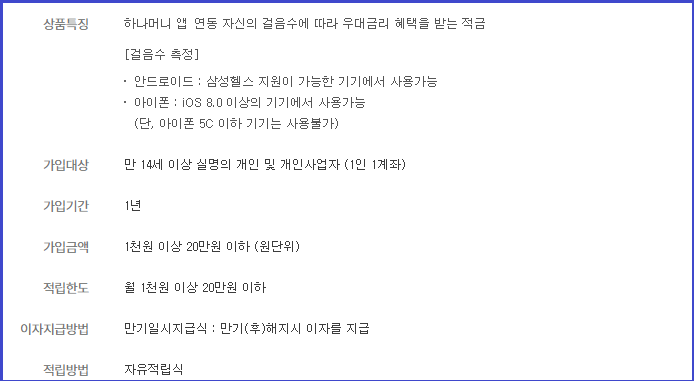 하나머니 앱 자신의 걸음수에 따라 우대금리 혜택을 받는 적금입니다.