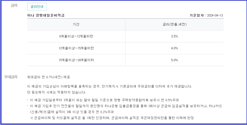 하나 장병내일준비 적금