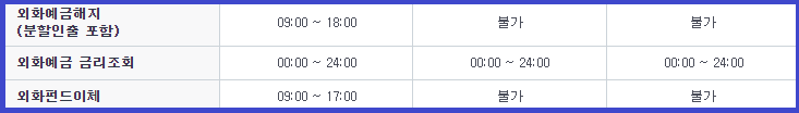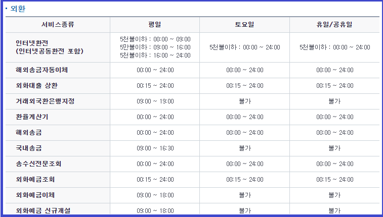 √ 인터넷 환전 등 외환 서비스 이용시간은 다음과 같습니다.