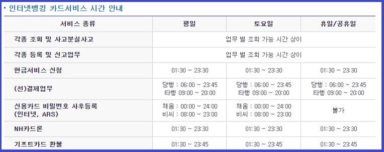 √ 각종 조회 및 사고분실사고 등 인터넷뱅킹 카드서비스 시간 안내 서비스 이용시간은