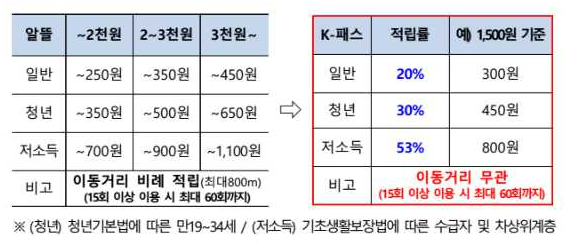 K패스와 알뜰교통카드 차이를 살펴보면,