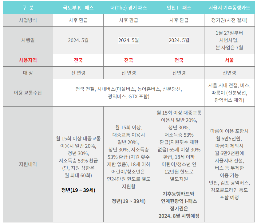K패스와 기후동행카드 비교에 대해서 알아보았습니다.