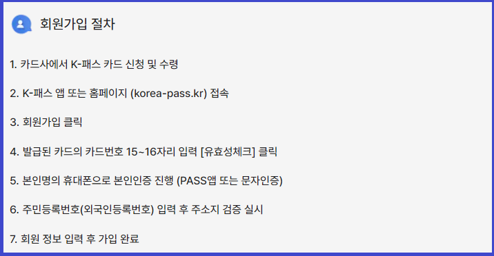 또한, 신규 이용자분들은 원하는 카드사 선택 후 K 패스 홈페이지 또는 앱에서 카드 등록 후
