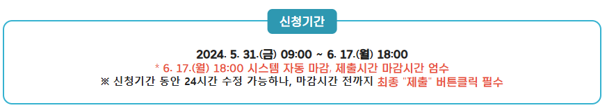 ☞ 신청기간 동안 24시간 수정 가능하오니, 마감시간 전까지 최종 '제출' 버튼 클릭 필수