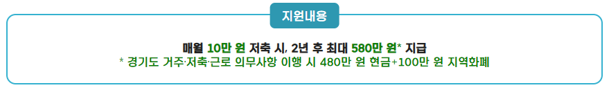 (경기도 거주·저축 근로 의무사항 이행 시 480만 원 현금 + 100만 원 지역화폐)