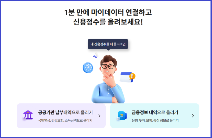 √ NICE 지킴이 홈페이지를 통해, 1분 만에 마이데이터을 연결하고 신용점수를 올려보세요!