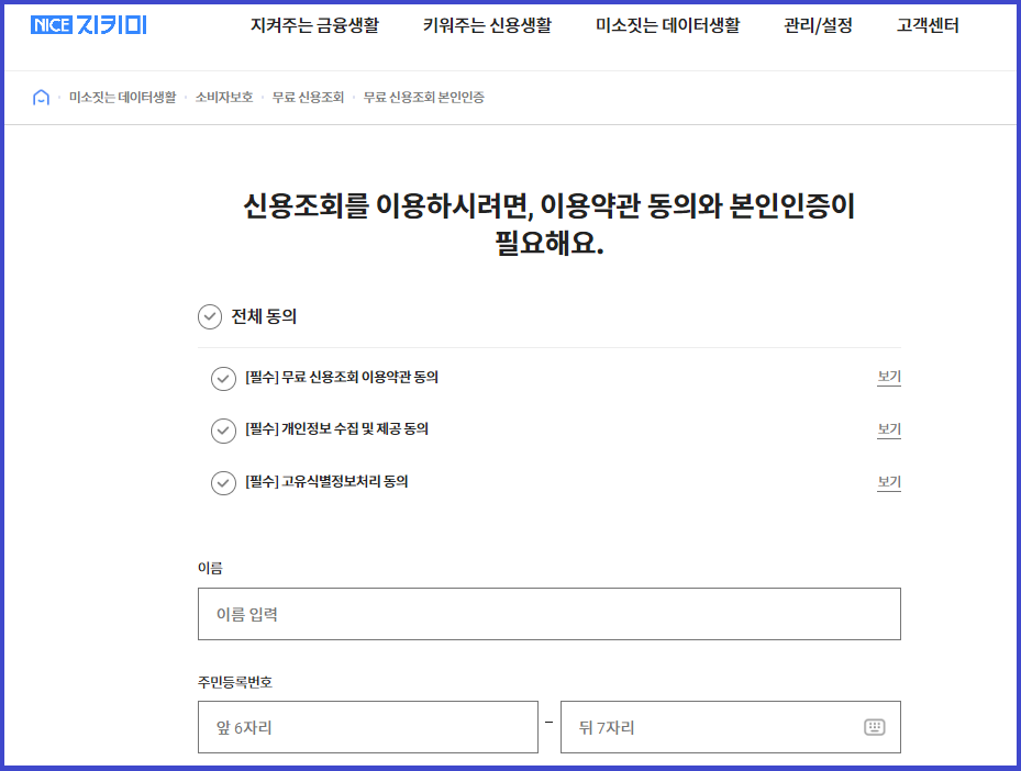 ㉰ 내 신용점수(KCB, NICE)를 확인합니다.