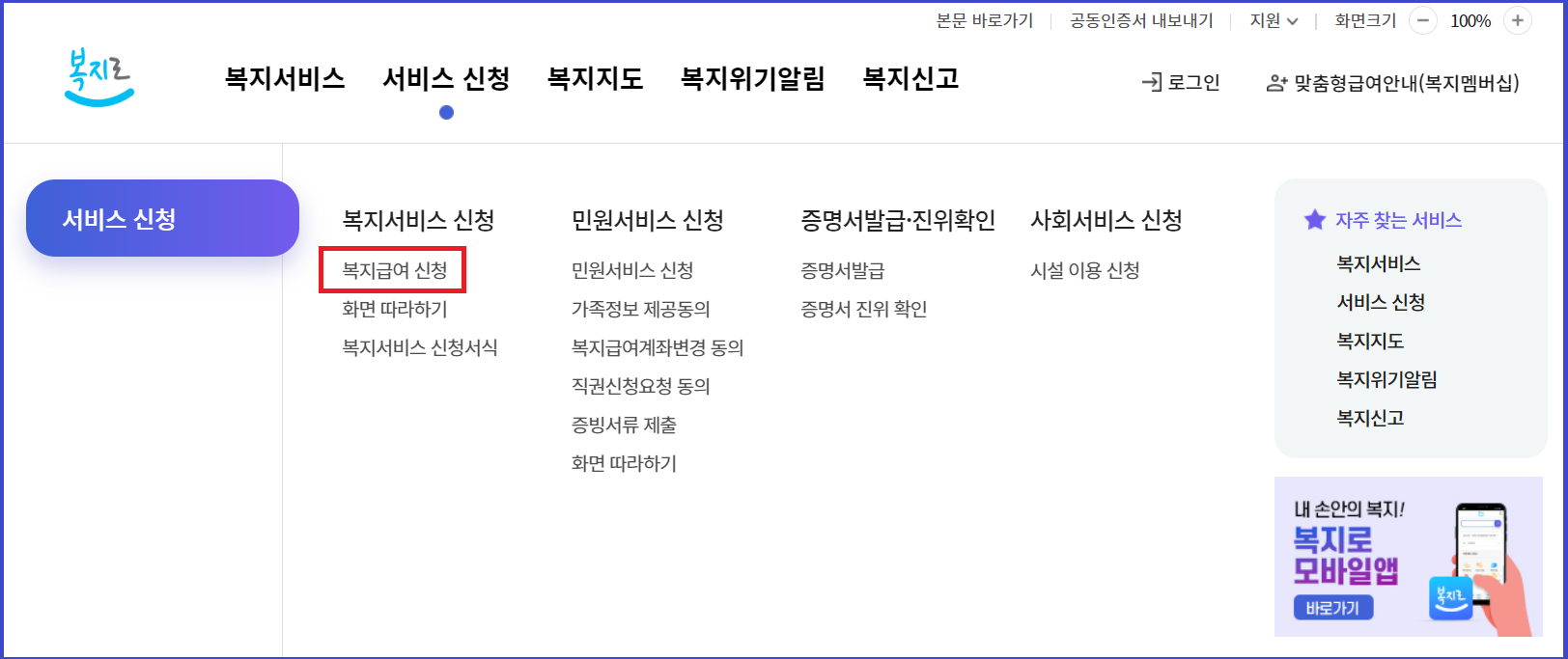 복지로란 보건복지부와 한국사회보장정보원에서 운영하며, 복지서비스 제공 및 신청까지