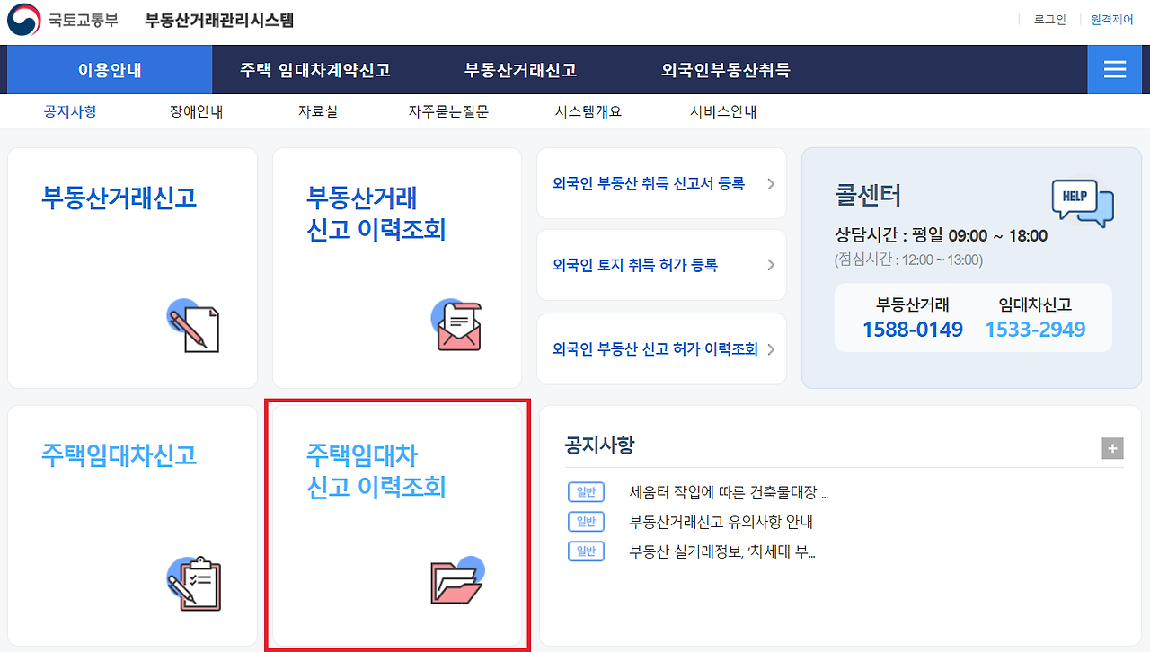 신고 후, 부동산거래관리시스템에서도 신고 여부를 확인할 수 있습니다.